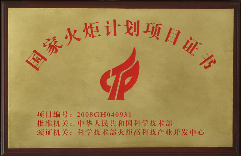 國家火炬計劃項目證書
